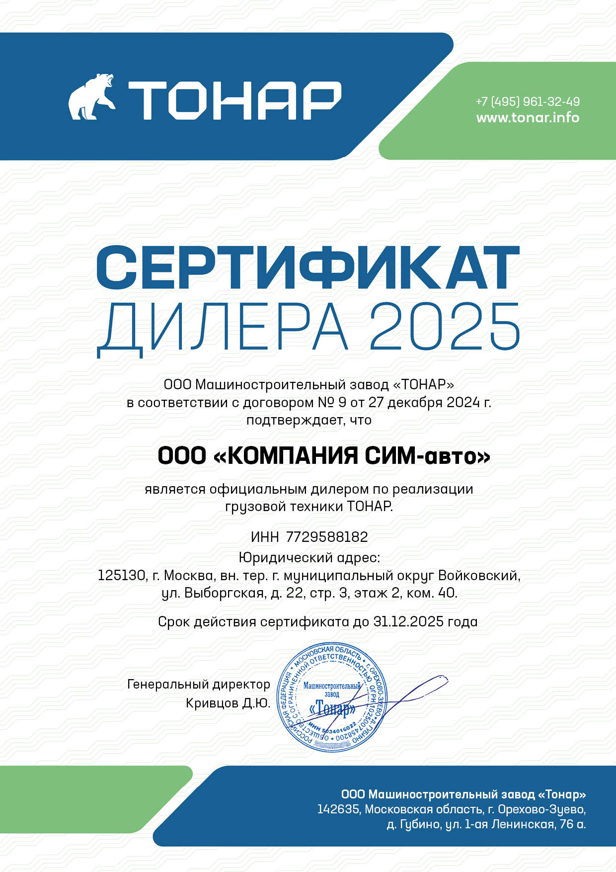 Обладая более чем 20-летним опытом, Тонар является одним из крупнейших российских производителей автомобилей и прицепной техники. "Тонар" сегодня – это клиентоориентированная компания, конкурирующая по качеству своего производства с международными производителями подобной техники.