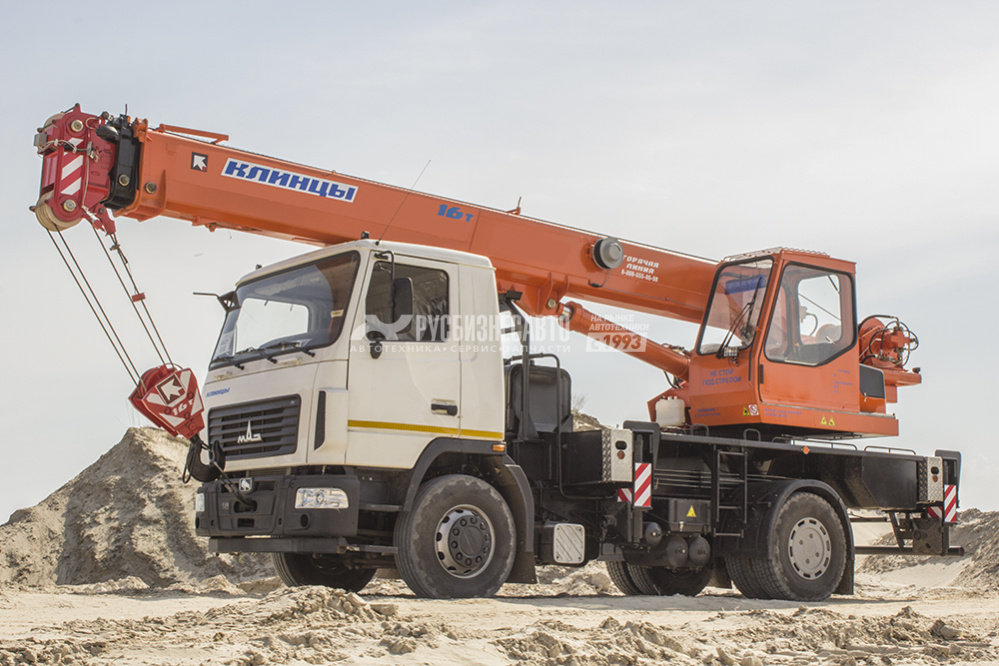 Груз-ть - 16 т; Модель шасси - МАЗ 5340С2; Колес.фор. - 4x2; Модель двиг. - ; Длина стрелы - 19 м; Габ.разм., мм - 10100х2500х3600; М.снаряж - 16800; Опор.контур - 4150 х 5000; Кол.секций стрелы - 3; Срок гаран. - 18 месяцев или 1000 мото-часов;