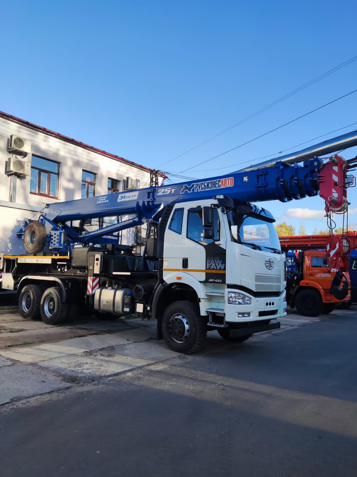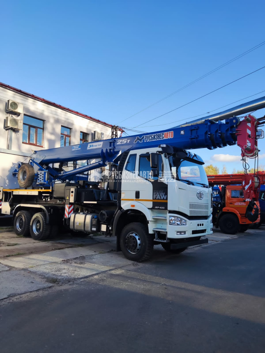 Грузоподъемность 25т, шасси FAW-3250 (6х6), стрела 31 м., с противовесом 1,5 (перевозится отдельно от крана), гарантия на кран 18 месяцев или 1000 м/ч