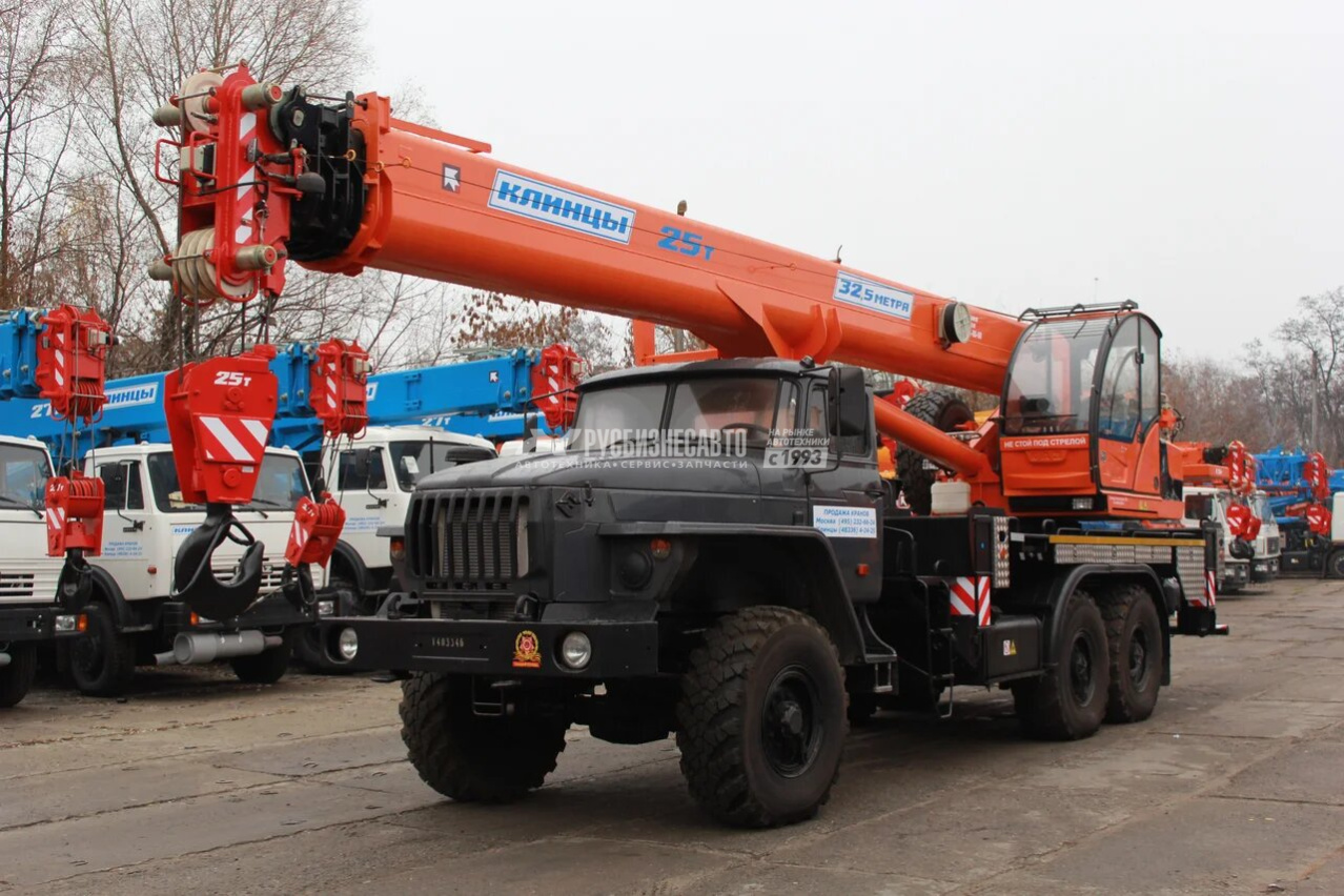 Груз-ть - 25 т; Модель шасси - УРАЛ-4320; Колес.фор. - 6Х6; Длина стрелы - 33 м.; Раб.зона - 360; М. 1,5 т. доп. отдельно возимый; Кол.секций стрелы - 4; Срок гаран. - 18 месяцев или 1000 мото-часов;