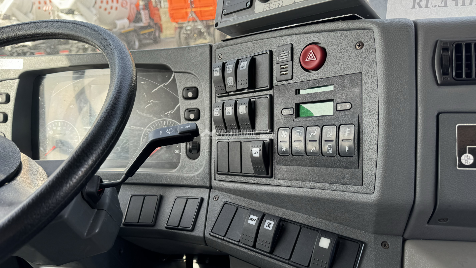 - Ручное управление шириной и плотностью посыпки ПГМ, позволяющее осуществлять раздельное, независимое управление транспортером и разбрасывающим диском из кабины водителя во время движения, не затрачивая время на остановку.