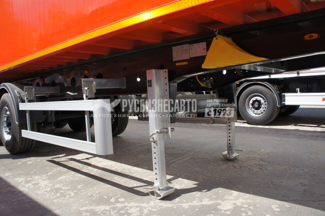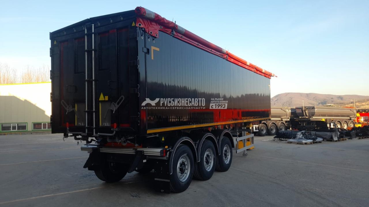 - Самосвальный алюминиевый полуприцеп 50 м3 Kassbohrer - Задняя разгрузка, клапан-ворота - Шасси высокопрочное сварное из стали S700, состоящее из двух сварных продольных балок «I» формы с поперечными балками на необходимом расстоянии в соответствии с ISO 1726-2 и ISO 1726 - Электрокатафорезная обработка шасси, 10 лет гарантия от сквозной коррозии - Конструкция кузова алюминиевые профили с внутренней толщиной стенок 4 мм, толщиной наружной стенки 2 мм - Оси 3 x 9 т, BPW с пневматической подвеской и дисковыми тормозами - Двухконтурная электропневматическая тормозная система WABCO марки EBS 2S/2M с антиблокировочной системой (ABS) и система контроля наклона (RSS) в соответствии с Правилами UN ECE R13 - Электооборудование Aspöck, осветительная установка со светодиодными боковыми габаритными  фонарями 24 B и контактными разъемами 2х7 и 1х15 - 1-я ось подъёмная, автоматическая - Под ССУ тягача 1220 мм - Полная масса 39 000 кг (г/п 32 510 кг) - Без запасного колеса, без кронштейна для запасного колеса
