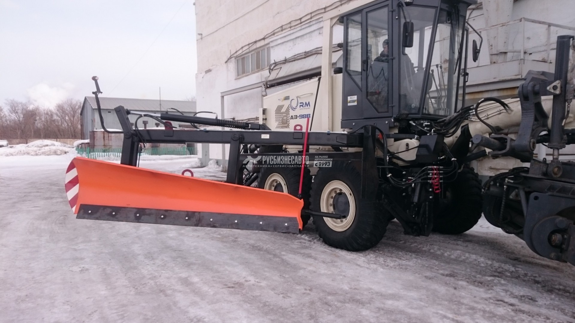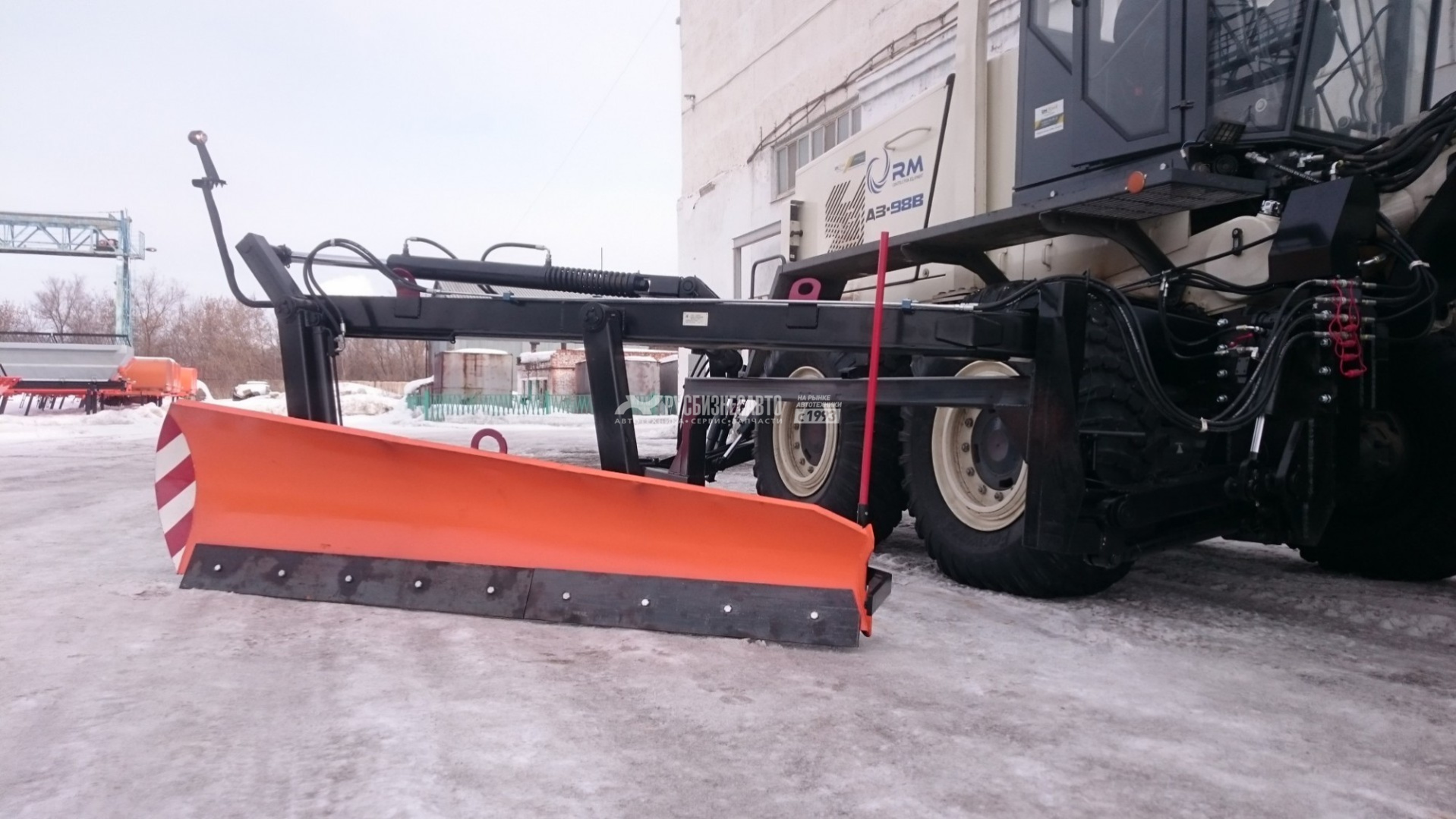 Отвал ОБГ–2 предназначен для уборки снега за ограждениями. Конструкция позволяет изменять угол установки отвала в широком диапазоне, что позволяет копировать профиль очищаемой поверхности. Оснащён системой безопасности касания стоек и защитой от перегрузок.