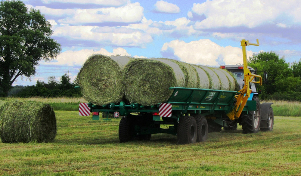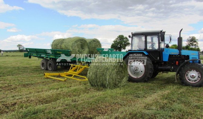 Погрузчик-транспортировщик рулонов сена ТП-10-1 предназначен для самозагрузки, транспортировки и саморазгрузки рулонов грубых кормов и льна, сформированных пресс-подборщиками.